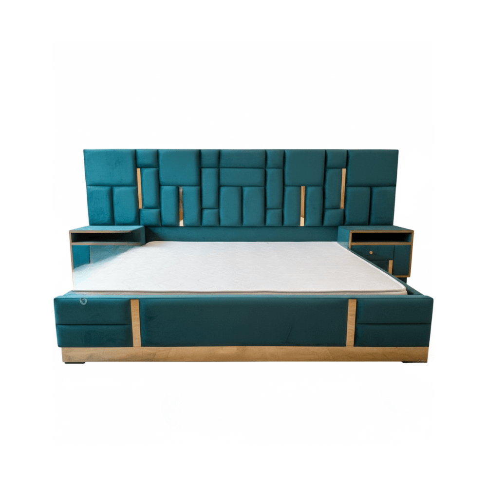 Elevate your bedroom sanctuary with the Luxurious King Size Full Back Bed Set with Brass Wood Finish by The Furniture Idea—a regal ensemble blending timeless craftsmanship and contemporary luxury. This complete set includes a spacious king-size bed with a grand full back headboard and two elegant side tables, all handcrafted from premium brass wood for enduring strength and sophisticated allure that withstands the test of time.