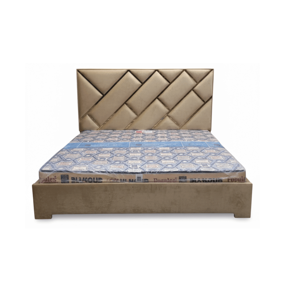The bed’s sleek brass finish adds an element of luxury, instantly transforming your bedroom into a statement of refined taste. Built for long-lasting performance, it features a durable structure that ensures stability and comfort for years to come. Designed without side tables or a dressing table, this model embraces simplicity and elegance, making it ideal for spaces that value open aesthetics and uncluttered design.